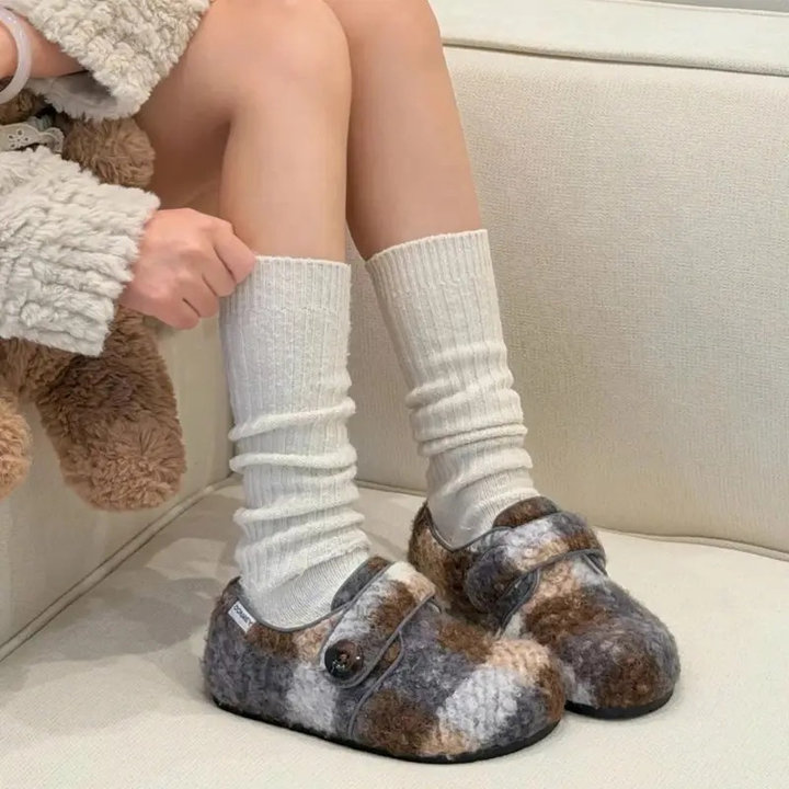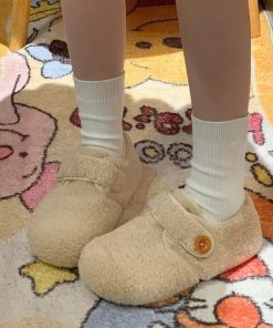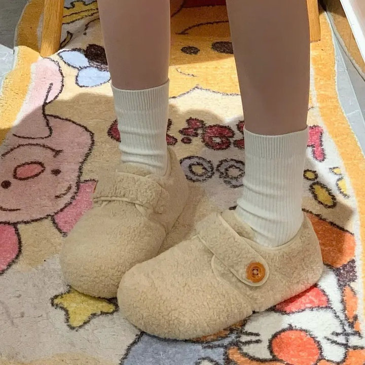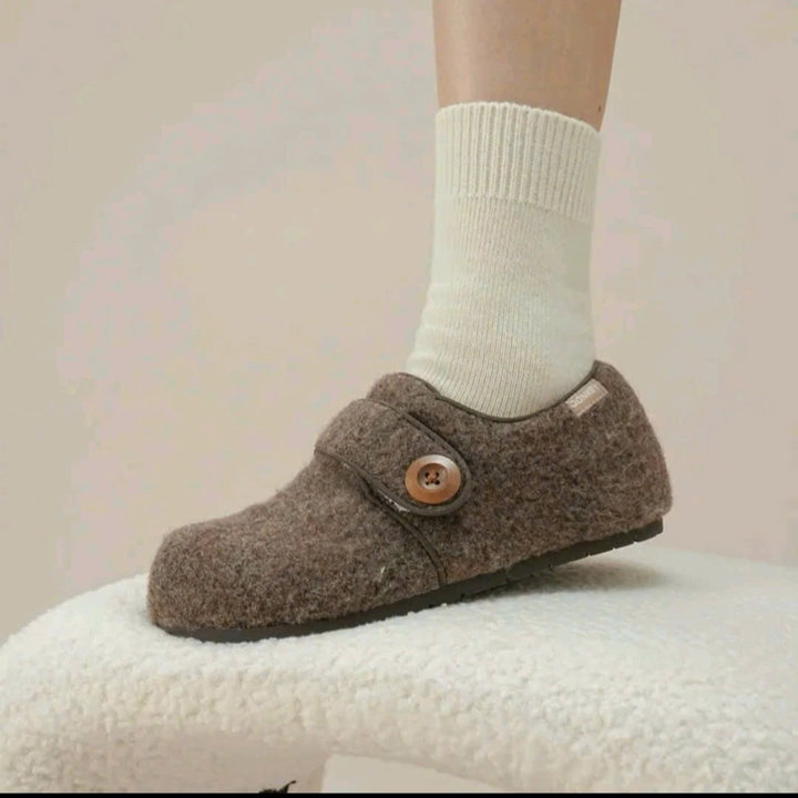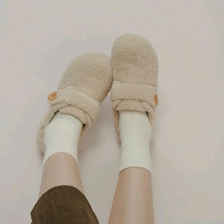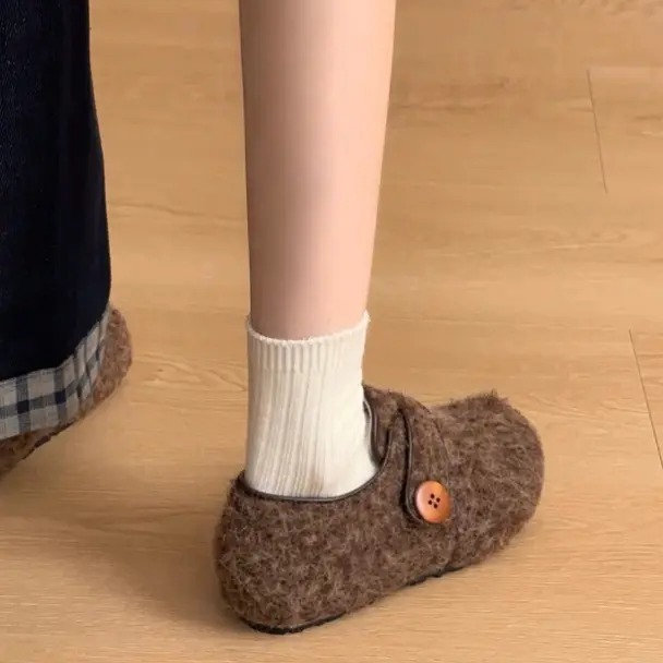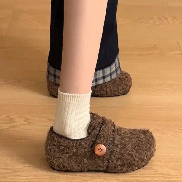 Thiết kế lông cừu ép dạ mềm ấm, phối khuy tinh tế, form giày xinh xắn dễ mang – phù hợp đi làm, đi chơi hay dạo phố nhẹ nhàng.