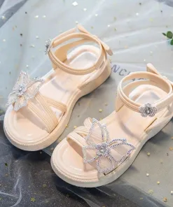 Tên sản phẩm: GIÀY SANDAL ĐẾ MỀM CHỐNG TRƯỢT ĐÍNH BƯỚM ĐÁ CHO BÉ GÁI NH01 – BE YOURSELF