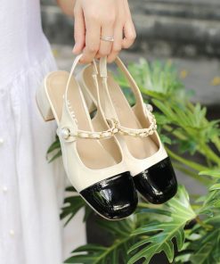 Giày Sandal Slingback SHIMEI Phối Mũi Quai Xích Da Bóng Mềm Cao 4p QCCC 6882