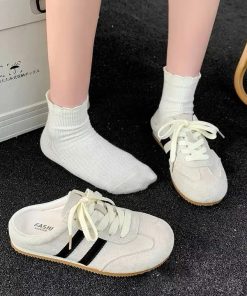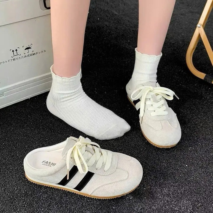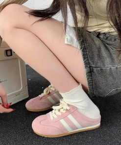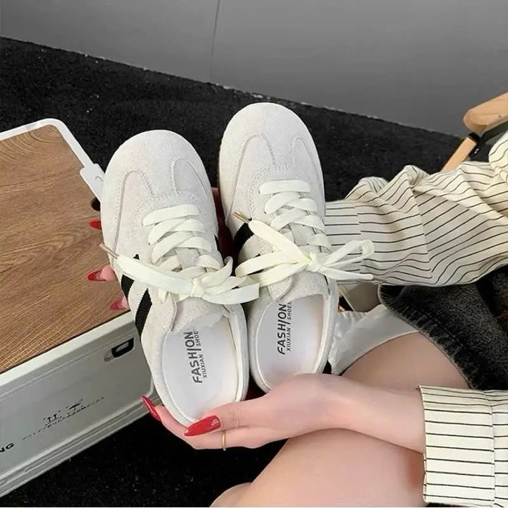 🎀 Chất da lộn thời thượng – phối hai sọc trẻ trung tạo điểm nhấn cá tính.