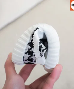 - Giày cho bé làm từ vải dệt kim thoáng khí và co giãn, giúp bé dễ đi, phù hợp sử dụng cho cả bốn mùa. Đế cao su non êm chân và không bị trơn trượt.