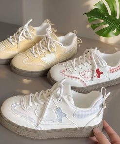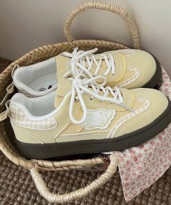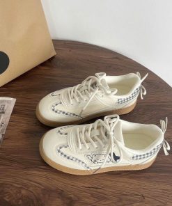 👟 Thiết kế trẻ trung với họa tiết caro trendy, mix thêm chi tiết hình thêu cực xinh, phù hợp từ đi học, đi làm đến đi chơi.