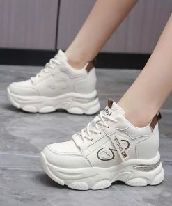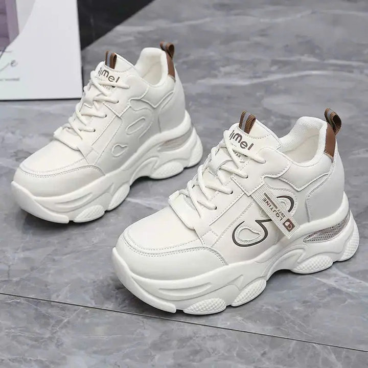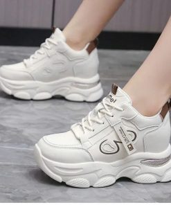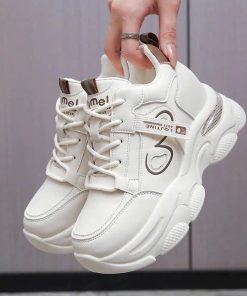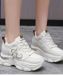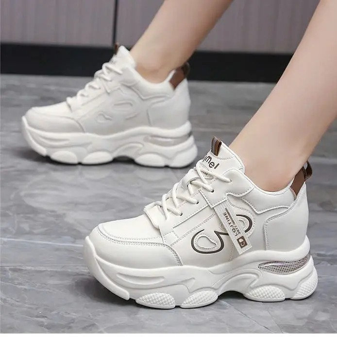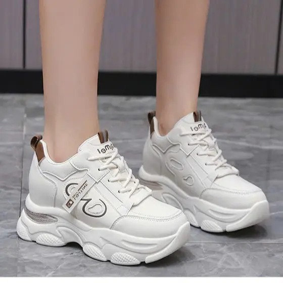 Mẫu giày thể thao nữ đế độn màu trắng với thiết kế trẻ trung, mang lại cảm giác thoải mái khi di chuyển hằng ngày. Kiểu dáng gọn gàng, phù hợp đi học, đi chơi hoặc dạo phố.