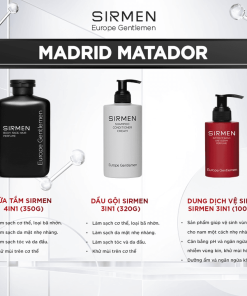 1. Sữa tắm gội dành cho nam 4 trong 1 hương nước hoa châu Âu SIRMEN Europe Gentlemen dòng cao cấp 350g chiết xuất tự nhiên bằng công nghệ EU-Nano đậm đặc