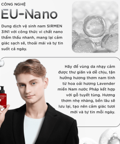 3. Dung dịch vệ sinh nam 3 trong 1 SIRMEN Europe Gentlemen hương nước hoa châu Âu nam tính quyến rũ dòng cao cấp 100g chiết xuất tự nhiên bằng công nghệ EU-Nano đậm đặc gấp