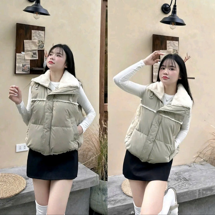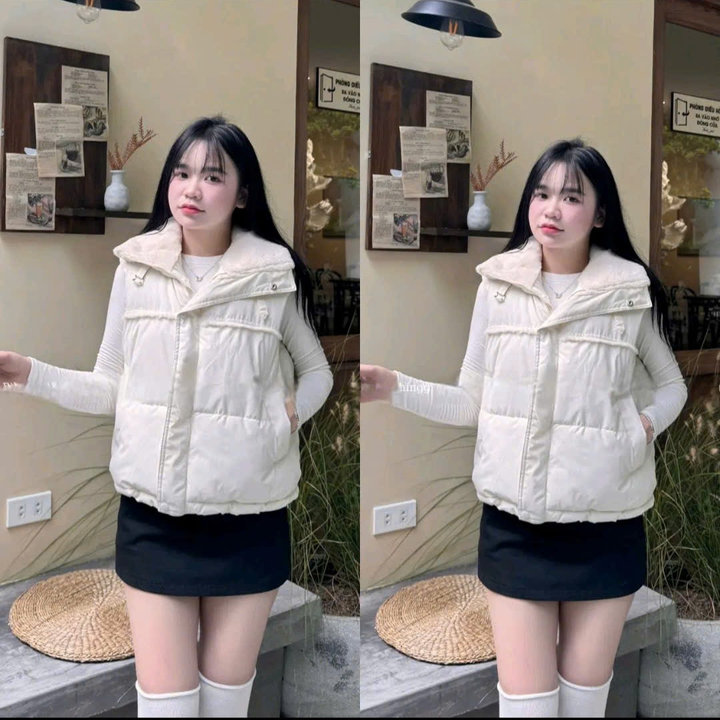 Cổ lông bản đẹp, chất phao gió siêu đẹp ạ. Hàng y ảnh y mẫu do nhà e tự chụp ạ.