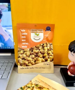 -Thành phần: 80% bắp nếp chiên tách dầu, 10% trứng muối, 5% bột phô mai, 5% gia vị (nước mắm, đường, ớt, tỏi).