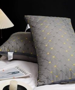 – Vỏ gối vải cotton 100% được đệm 1 lớp bông và chần quả trám rất đẹp mắt và êm ái.