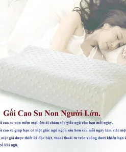 Gối Cao Su Non Người Lớn là loại gối ngủ có tác dụng kê đầu tạo tư thế thoải mái, đưa ta vào giấc ngủ để thư giẫn, nghỉ ngơi. Chính vì cấu trúc cơ thể con người hình chữ S nên việc nằm ngủ bắt buộc phải có thứ gì đó kê đầu để xương sống cảm thấy thoải mái.
