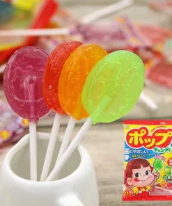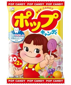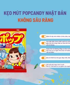 ? Kẹo mút hình bé gái 21 cái Pop Candy có 4 vị Cam, Dâu, Nho và Táo Xanh. Được làm từ đường Oligo và Siro trái cây nên kẹo có vị ngọt chua dịu và hương thơm rất tự nhiên.