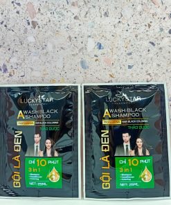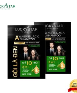 - Gội Là Đen Lucky Star mang lại mái tóc đen bóng tự nhiên, ngăn ngừa rụng tóc, không gây kích ứng da, không có tác dụng phụ.