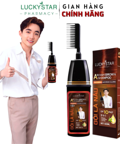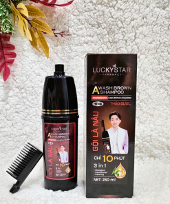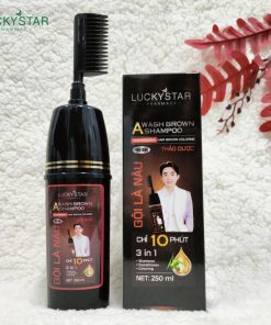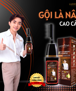 - LuckyStar vừa mang đến cho khách hàng một siêu phẩm giúp phủ bạc mái tóc của bạn mang lại mái tóc nâu lấy lại thanh xuân trong vòng 10 phút. Gội là nâu không bám da, không hoá chất. Thành phần chủ yếu từ thảo dược, có mùi thơm nhân sâm cực kỳ dễ chịu.