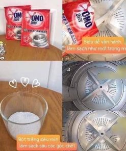 – Bỏ 1 gói vào lồng giặt, chọn chế độ làm sạch lồng giặt là xong