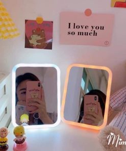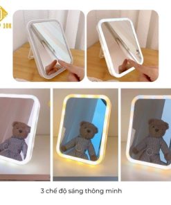 Gương để Bàn đèn Led, Gương Led để Bàn Hình Chữ Nhật Dùng Pin