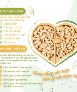 • Thành phần: 99% hạt điều, 1% muối tinh