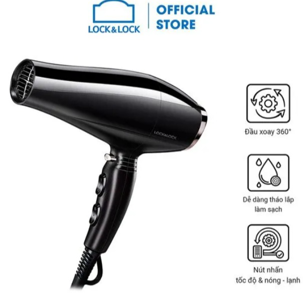 Máy Sấy Tóc Lock&Lock Đen ENA146BLK 2000-2300W – Hàng chính hãngcó đầu xoay 360 độ, khớp xoay 360 độ