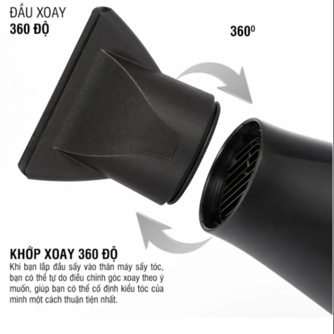 Khi bạn lắp đầu sấy vào thân máy sấy tóc, bạn có thể tự do điều chỉnh góc xoay theo ý muốn, giúp bạn có thể cố định kiểu tóc của mình một cách thuận tiện nhất.