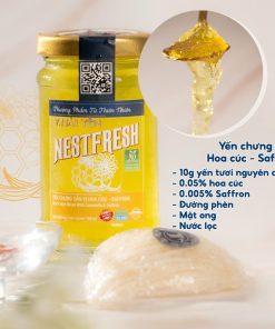 Nestfresh Vị Hoa Cúc – Saffron 100ml: 10g Yến Việt sợi tươi nguyên chất, 0.05% hoa cúc, 0.005% nhụy hoa nghệ tây, 2.5% mật ong các nguyên liệu thiên nhiên.
