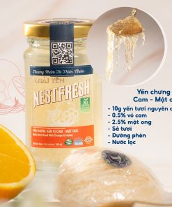 Nestfresh Vị Cam – Mật Ong 100ml: 10g Yến Việt sợi tươi nguyên chất, 2.5% mật ong, 0.5% vỏ cam các nguyên liệu thiên nhiên.