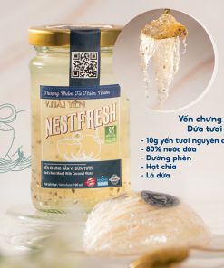 Nestfresh Vị Dừa Tươi 100ml: 10g Yến Việt sợi tươi nguyên chất, 80% nước dừa tươi, 1.5% đường phèn, các nguyên liệu thiên nhiên.