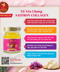 Yến hũ chưng Saffron & Collagen NHÂN VIỆT 30% Yến được chế biến từ nguyên liệu chính là yến sào nguyên chất 100% và đường phèn Mix Saffron và Collagen. Sự kết hợp hoàn hảo rất tốt cho sức khoẻ như: