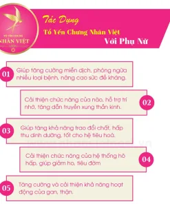 – Sử dụng Tổ yến sào chưng thường xuyên không những giúp phụ nữ tăng cường sức khoẻ mà còn cải thiện làn da trắng đẹp, giảm thâm nám và làm chậm quá trình lão hoá da,…..