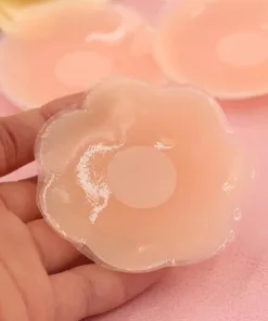 - Lấy miếng dán gỡ bỏ lớp nilon, sau đó đặt vừa khít cân đối che hết phần nhũ hoa và quầng vú. Làm tương tự với bên ngực còn lại. Sau đó dùng 2 tay giữ cố định 2 bên ngực trong vòng vài giây để cố định 2 bên.