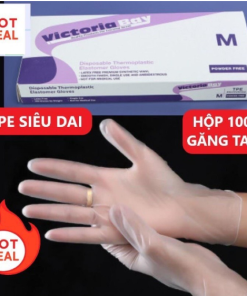 • Găng tay làm bếp nấu ăn vệ sinh Victoria Bay được làm từ chất liệu TPE kháng khuẩn, siêu dai, không mùi, không dễ rách như các loại găng tay khác trên thị trường, chống nhăn hộp 100 cái, an toàn khi sử dụng..