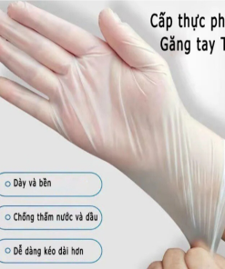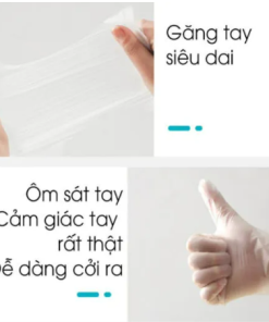 • Găng tay dùng 1 lần được làm từ nilon với ưu điểm mỏng, dai, là món đồ dùng tiện lợi trong mỗi gia đình, thích hợp sử dụng khi chế biến thực phẩm như sơ chế, trộn gỏi,… hoặc dùng để nhuộm tóc, mang khi dọn nhà…