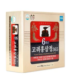Hộp 2 hũ cao hồng sâm 6 năm – 365 là sản phẩm tập trung dược tính của nhân sâm tự nhiên 6 năm tuổi cùng các loại thảo dược quý như linh chi, bạch chỉ, xuyên khung… Qua quá trình chưng cất nhiều lần, kết hợp cùng kỹ thuật bốc hơi chân không ở nhiệt độ thấp và phương pháp chế biến truyền thống của Hàn Quốc, đã cho ra đời sản phẩm cao hồng sâm đặc hiệu, giúp phát huy tối đa công dụng của nhân sâm trong bồi bổ sức khỏe.