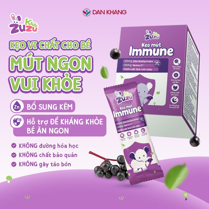 KẸO MÚT ZUZUKIDS IMMUNE – BỔ SUNG KẼM, HỖ TRỢ TĂNG ĐỀ KHÁNG CHO BÉ