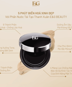 Phấn nước Cushion E&G Beauty ứng dụng công nghệ phấn tươi với hàng triệu phân tử phấn siêu nhỏ, giúp tạo lớp nền mỏng nhẹ, hỗ trợ thẩm thấu nhanh.