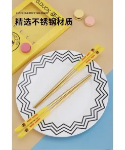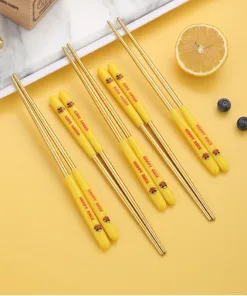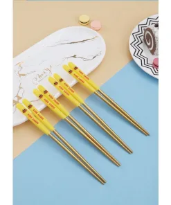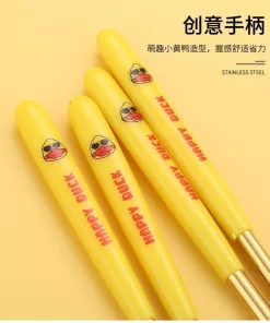 Bộ 5 đôi đũa hình vịt vàng được làm bằng chất liệu inox, có thể sử dụng tiếp xúc trực tiếp với thực phẩm, không dễ bị oxy hóa và có tuổi thọ cao hơn.