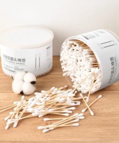 Hộp 500 que tăm bông ngoáy tai tiệt trùng,2 đầu bông tròn thân gỗ, thân thiện với môi trường- tăm bông cho gia đình
