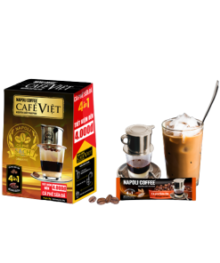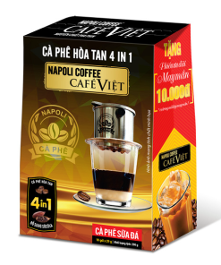 - Cà phê sữa hoà tan 4 in 1 – Napoli Coffee được chế biến từ lớp cốt đầu tiên của café bột rang xay, thêm vào ít đường, sữa bột và hỗn hợp kem không béo.
