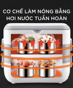 • Tuy nhiên, nhiều người sẽ e ngại hộp cơm mang theo từ sáng sớm đến buổi trưa sẽ không còn nóng sốt và thơm ngon nữa. Hâm nấu thức ăn bằng nguyên lý hơi nước, sử dụng sức nóng của hơi nước