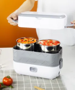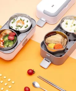 - Thêm vào đó hộp cơm hâm nóng 2 tầng còn có khả năng tự động ngắt khi nóng đủ độ, nắp đậy hộp khít hơn, thức ăn không bị tràn, mùi không lẫn với nhau và không thoát ra ngoài.