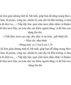 – Thiết kế đơn giản nhưng tinh tế, bắt mắt, giúp bạn dễ dàng mang theo đồ ăn khi đi làm, đi picnic, công tác, chuẩn bị cơm cho bé đến trường,