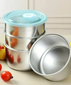 * Sản phẩm bát inox có nắp hút chân không với thiết kế thông minh chiếc bát với các kích thước khác nhau phù hợp để đựng từng loại đồ ăn một cách gọn gàng tiết kiệm diện tích.Sản phẩm giúp bạn có thể đựng bảo quản đồ ăn một cách vệ sinh và an toàn tránh khỏi những vi khuẩn gây hại