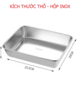 - Tên sản phẩm: Hộp Inox Kèm Nắp Nhựa, Hộp Đựng Thức Ăn Inox 304 Chữ Nhật Có Nắp Đậy Kín cỡ lớn 25.5 x 20 cm