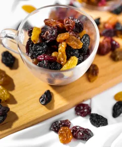 Tác dụng của nho khô: ·Cung cấp các loại vitamin và khoáng chất cần thiết cho cơ thể. ·Chứa hàm lượng sắt dồi dào, có vai trò quan trọng trong sản xuất hồng cầu, sử dụng nho khô thường xuyên để ngăn ngừa thiếu máu. Bên cạnh đó, nó còn có thể thúc đẩy quá trình đông máu, giúp vết thương nhanh lành hơn. ·Nho là thực phẩm cực kỳ tốt cho hệ tiêu hóa, giúp tăng cường hoạt động của hệ tiêu hóa, giúp loại bỏ các độc tố và chất thải từ đường tiêu hóa.Nho khôgiúp là giảm và ngăn ngừa táo bón. ·Chất chống o-xy hóa trong nho có khả năng tăng cường miễn dịch, chống cảm vặt, tiêu diệt các gốc tự do gây hại cho cơ thể, và đặc biệt là có khả năng ngăn ngừa sự hình thành và phát triển của tế bào ung thư. ·Sử dụng nho mỗi ngày sẽ giúp duy trì đường huyết ở mức ổn định, giảm lượng cholesterol, bảo vệ sức khỏe của tim, giảm nguy cơ của đau tim, đột quỵ. ·Ăn nho khô Sunview để tăng cường sức khỏe của mắt, nho khô chứa dưỡng chất có thể bảo vệ mắt khỏi bị tổn thương bởi các gốc tự do, ngăn ngừa thoái hóa điểm mắt đục thủy tinh thể và suy giảm thị lực. ·Canxi trong nho giúp xương khớp chắc khỏe,ngừa loãng xương. ·Giàu Kali, ăn nho khô Mỹ thường xuyên sẽ ngăn ngừa hình thành và tái phát sỏi thận. ·Có lợi cho răng miệng, chống sâu răng, cao răng và hôi miệng, boron có trong sản phẩm ngăn ngừa vi trùng và có tác dụng làm trắng răng, canxi giúp răng chắc khỏe. ·Giúp ngủ ngon hơn, cải thiện tình trạng mất ngủ và có thể giúp cải thiện cân nặng. ·Bên cạnh đó, tiêu thụ nho còn có thể giúp da khỏe mạnh, làm chậm lão hóa, chức năng thanh lọc máu của nho khô sẽ cho bạn làn da hồng hào, rạng rỡ, mịn màng. Đồng thời nó cũng có tác dụng rất tích cực trong việc nuôi dưỡng mái tóc bóng mượt, khỏe mạnh, góp phần ngăn ngừa hói đầu. Đối tượng nên sử dụng: – Phụ nữ mang thai và cho con bú – Trẻ em độ tuổi phát triển – Những người thiếu máu, suy nhược, hay mệt mỏi, stress,… – Người có hệ miễn dịch kém, dễ ốm vặt – Người rối loạn tiêu hóa, thường xuyên bị táo bón – Những người có vấn đề về huyết áp, tim mạch, thị lực