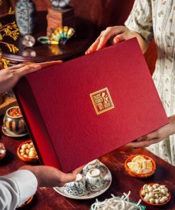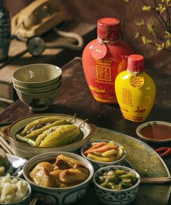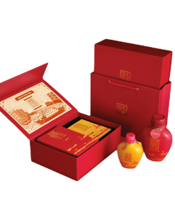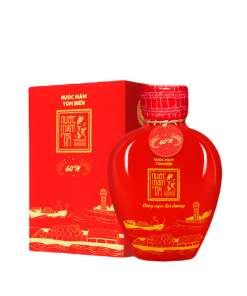 - Hộp quà “Đậm đà tình thân” gồm 01 nước mắm tĩn tôm biển 60N 500ml trong bình gốm đỏ mang ý nghĩa may mắn độc quyền và 01 nước mắm tĩn cá cơm ruột đỏ 60N 250ml trong bình gốm vàng.