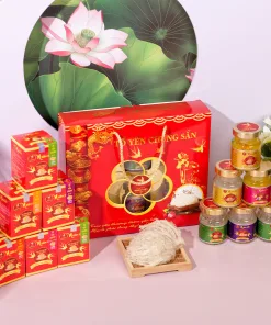 -Yến Hạt Sen: Nước tinh khiết, Yến Sào (30%), Đường phèn, Hạt Sen……