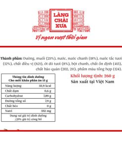 – Thành phần: Đường, muối (25%), nước, nước chanh (18%), nước tắc tươi (12%), chất điều vị (621), ớt đỏ tươi (8%), bột chanh, chất ổn định (415), chất bảo quản (202, 211), phẩm màu tổng hợp (124)