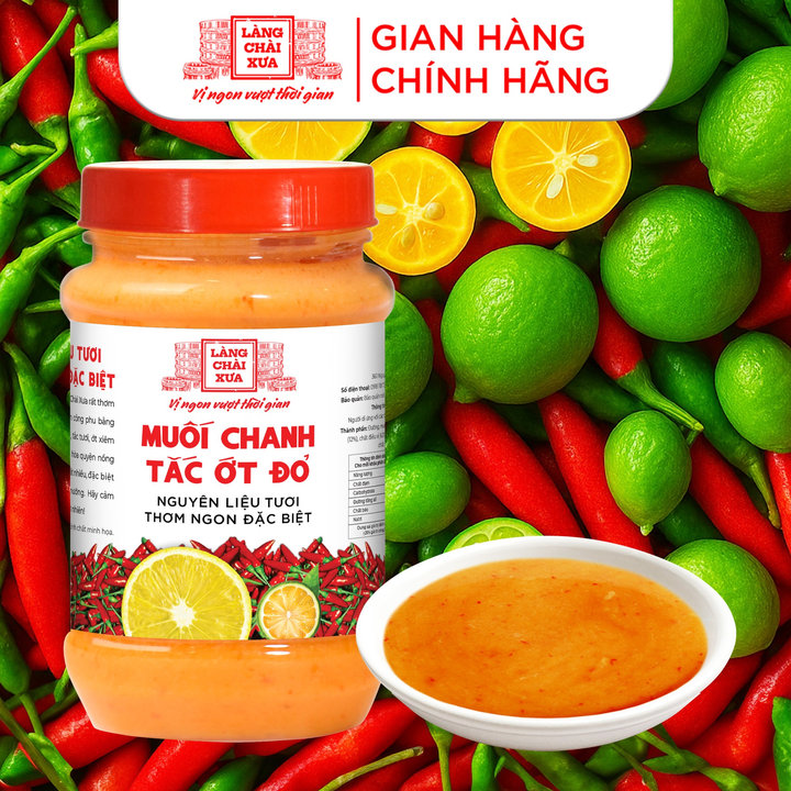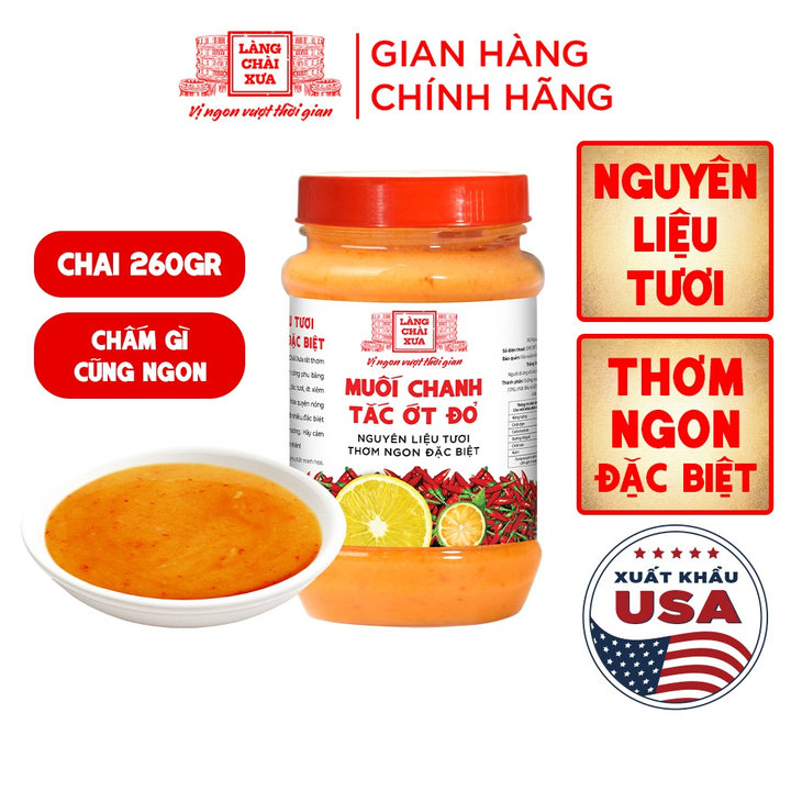 – Muối ớt đỏ chanh tắc Làng Chài Xưa rất thơm ngon và khác biệt, được làm công phu bằng nguyên liệu tươi. Chanh tươi, tắc tươi, ớt xiêm tươi và muối sạch tinh khiết hòa quyện nồng nàn giúp món ăn ngon hơn rất nhiều, đặc biệt là các loại thịt luộc, thịt nướng. Hãy cảm nhận hương vị thơm ngon tự nhiên!