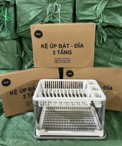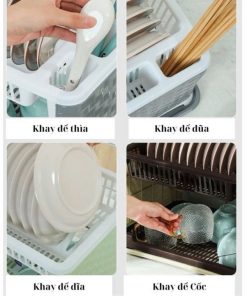 Kệ đựng bát đĩa 2 tầng nhà bếp, giá để bát đũa tiện lợi có khay hứng nước