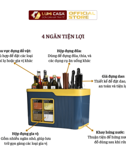 - Kệ gia vị đa năng: Sản phẩm tích hợp nhiều tính năng tiện ích, bao gồm: