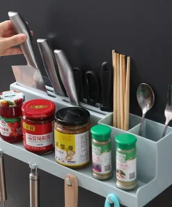 – Kệ đựng gia vị nhà bếp đa năng có thiết kế thông minh, nhỏ gọn, đa năng, tiết kiệm diện tích giúp giải quyết và thay thế toàn bộ các giá đựng gia vị, khe cắm dao, móc treo kéo, thìa, dụng cụ nhà bếp, ống đựng đũa thìa nĩa, dao, gia vị,…