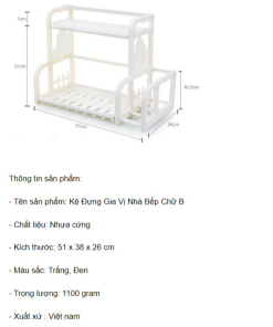– Tên sản phẩm: Kệ Đựng Gia Vị Nhà Bếp 2 Tầng Chữ B