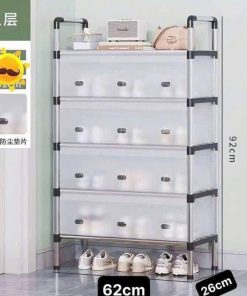 Kệ Giày Dép 5 Tầng Khung Inox Chắn Bụi Bẩn, Kệ Inox 5 Tầng Có Tấm Chắn Bụi Giày, Siêu Bền, Tiện Dụng